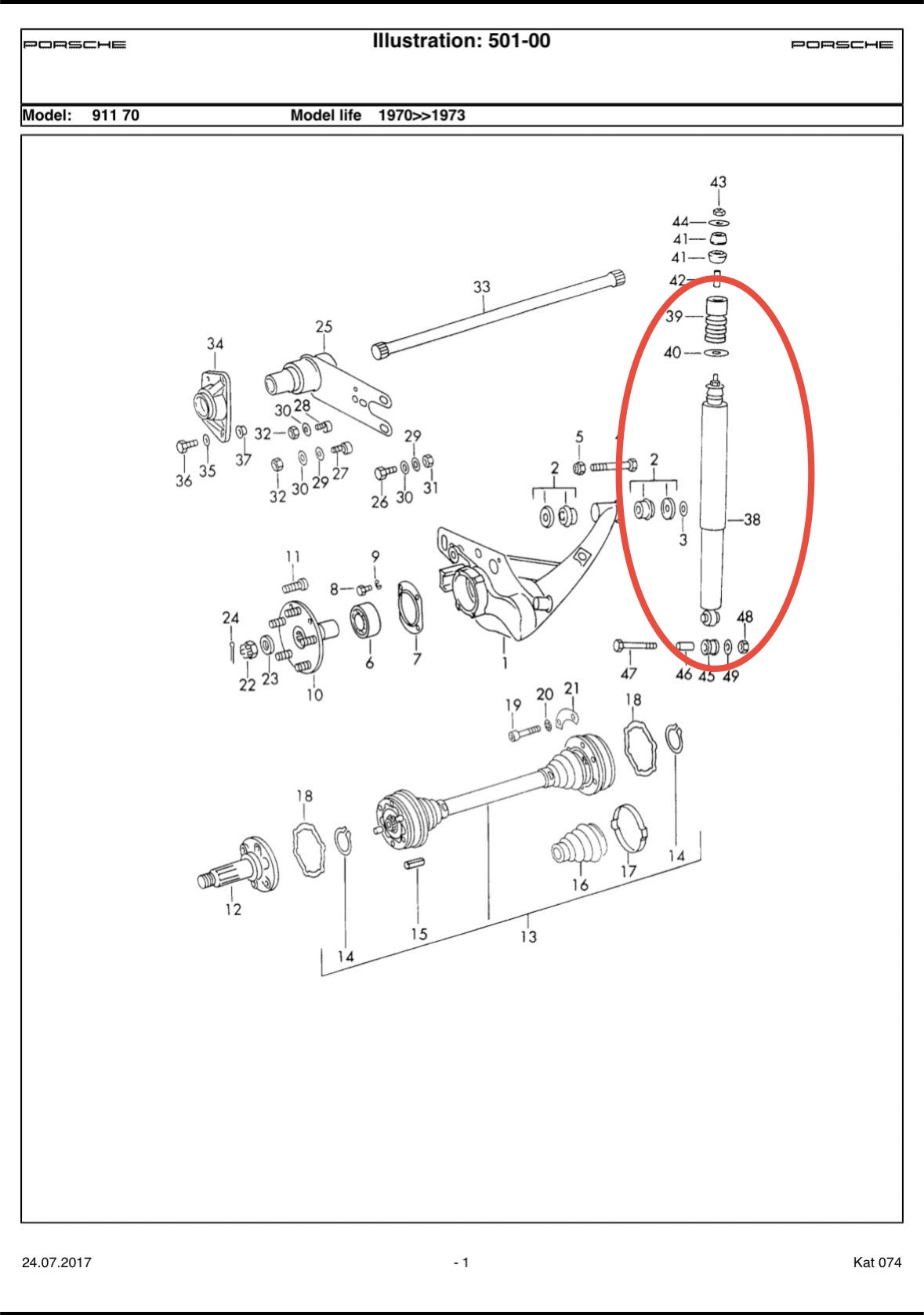 "Vibration damper - koni", p/n PCG.333.051.01 /.02 ('72-) /.03 ('74-'77)